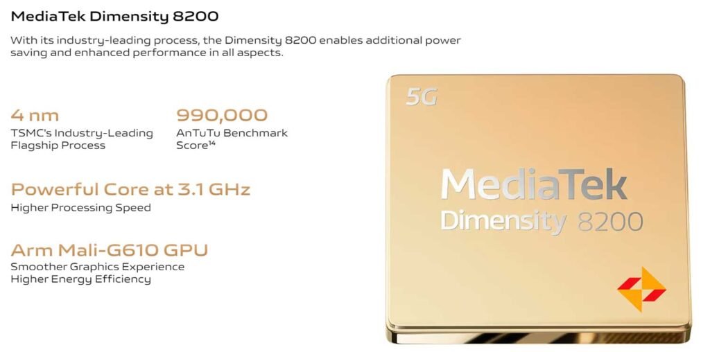 Vivo V30 Pro में मीडियाटेक डाइमेंसिटी 8200 प्रोसेसर है, जो 4nm प्रोसेस टेक्नोलॉजी पर आधारित है। यह प्रोसेसर शानदार प्रदर्शन और बेहतरीन ऊर्जा दक्षता प्रदान करता है।